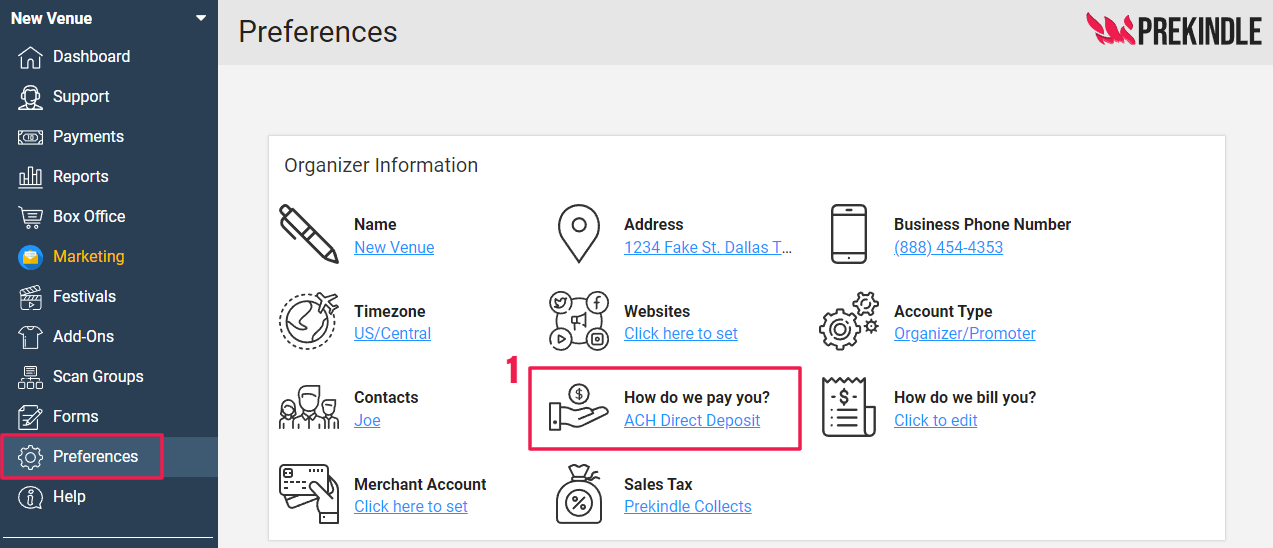 Enter payment information in Payment Preferences before your first payout.