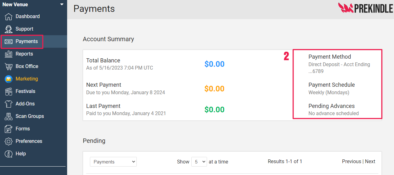 Payouts are processed automatically according to the payout schedule set by Prekindle. This is typically on the Monday following the event. Once your payment information is confirmed and approved, funds from ticket sales will be sent via your designated payment method.