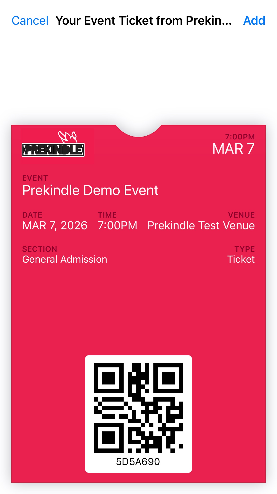 iPhone users can store their Prekindle tickets in their Apple Wallet app.