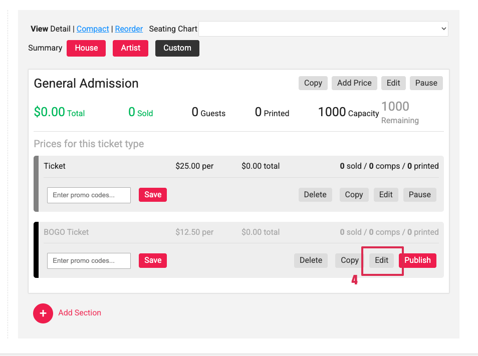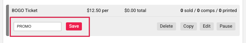 Promotional offers like Buy One Get One Free, Buy One Get One Half Off, or 4-pack bundles are great ways to drive volume, but they require a slightly different setup than standard ticket pricing.