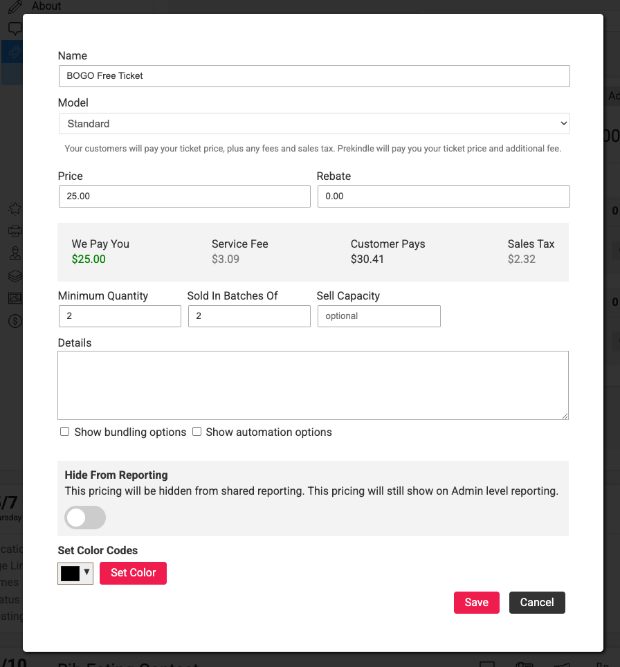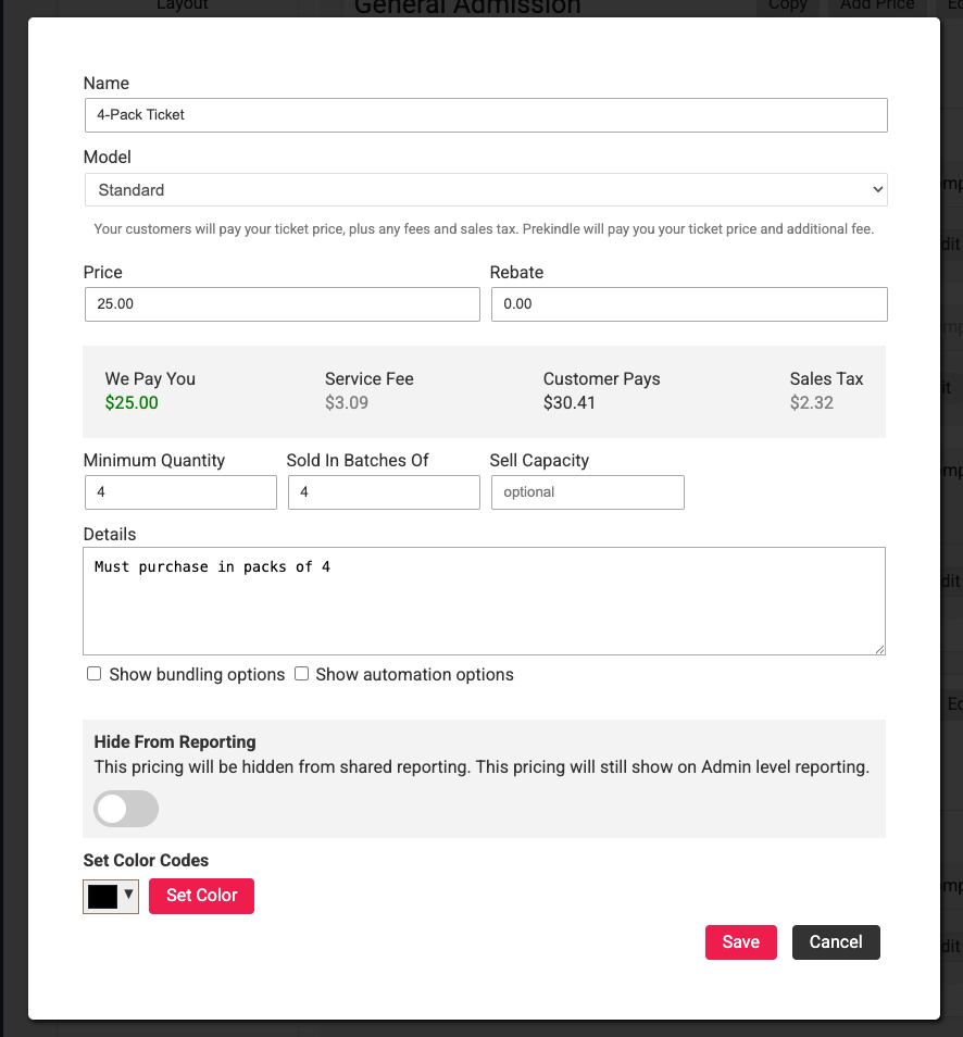 Even if your promotion is marketed as a bundle (like “BOGO” or “4 for $100”), the system still requires each ticket to have an individual price.